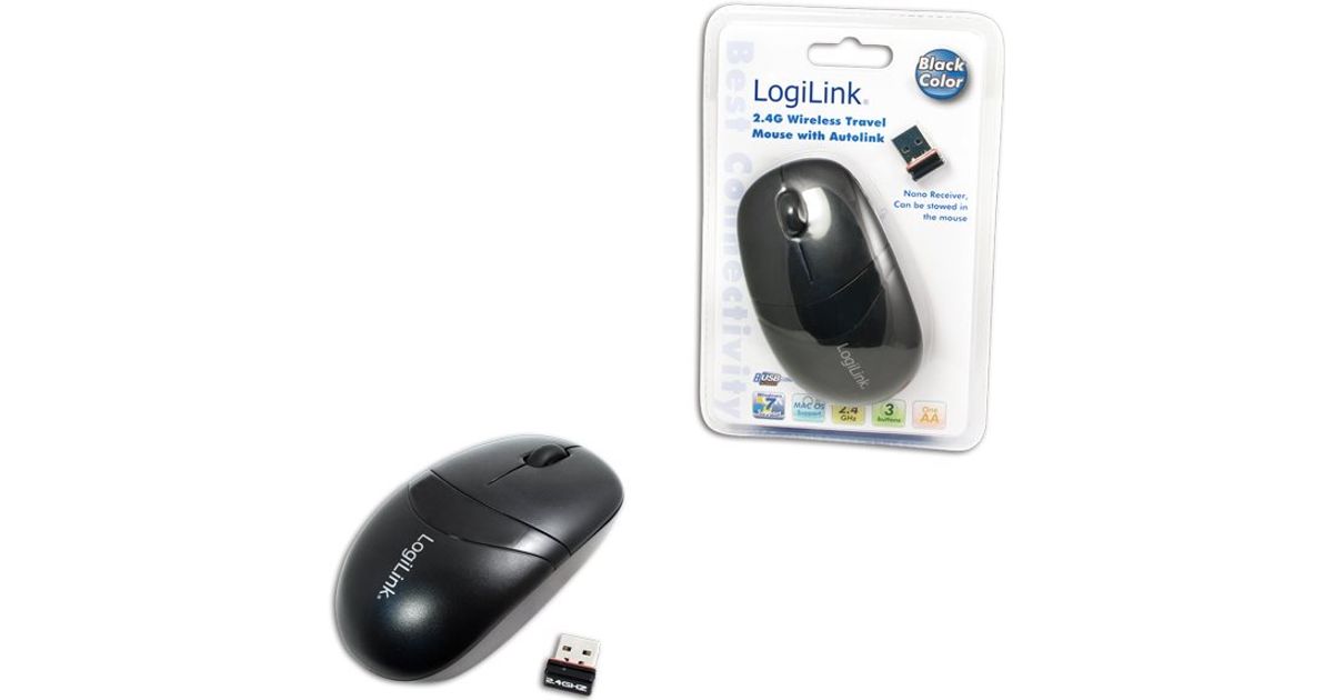 Logilink Notebook Mouse 2.40 GHz with optical sensor technology and 1000 dpi scanning for high precision and fast operation. The connection is via the included USB micro dongle and detects the mouse automatically by the Autolink feature. The mini dongle can be stored inside the mouse for transport. In addition to optical scan and vertical scroll wheel the mouse has 5 programmable buttons and a 3-level power saving mode.