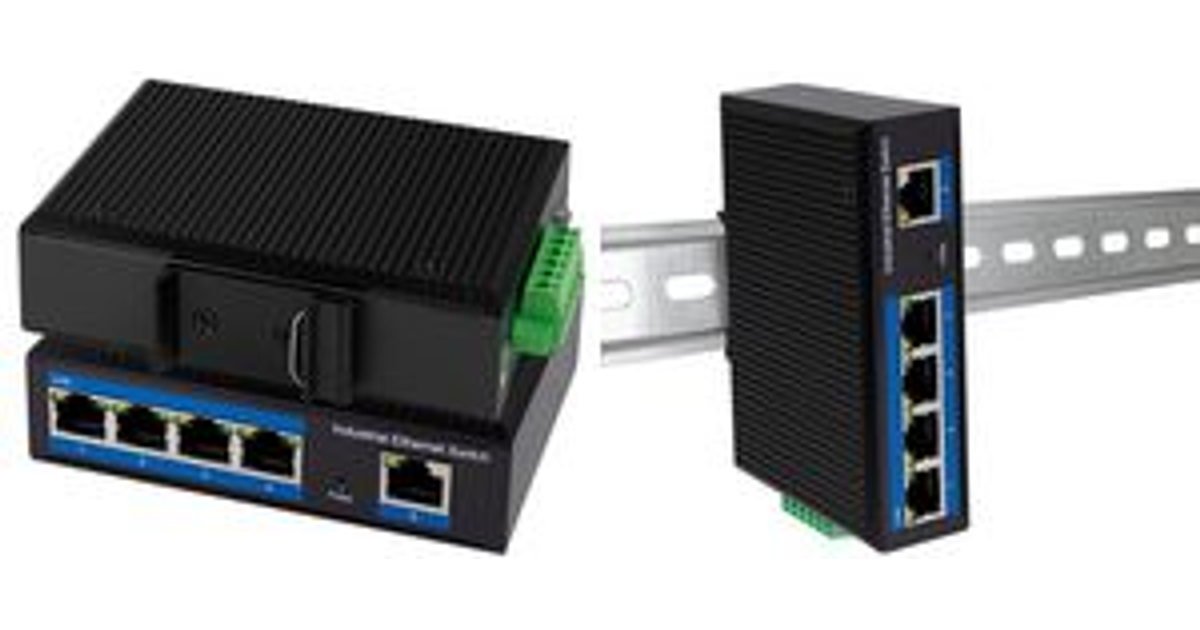 LogiLink Industrial Gigabit Ethernet Switch, 5-Port 10/100/1000 Base-TX RJ45, Plug & Play, schwarzes Metallge - 1 Stück (NS202)