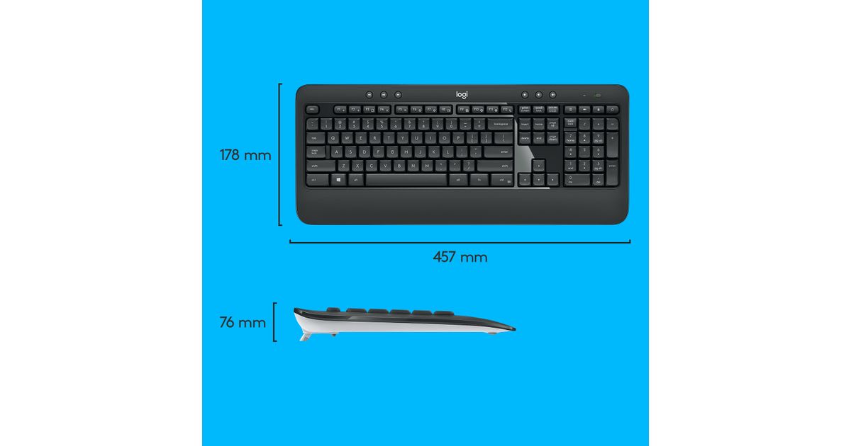 MK540 Advanced is an instantly familiar wireless keyboard and mouse combo built for precision, comfort and reliability. The full-size keyboard features a familiar key shape, size, and feeling – optimized for precision and noise reduction.