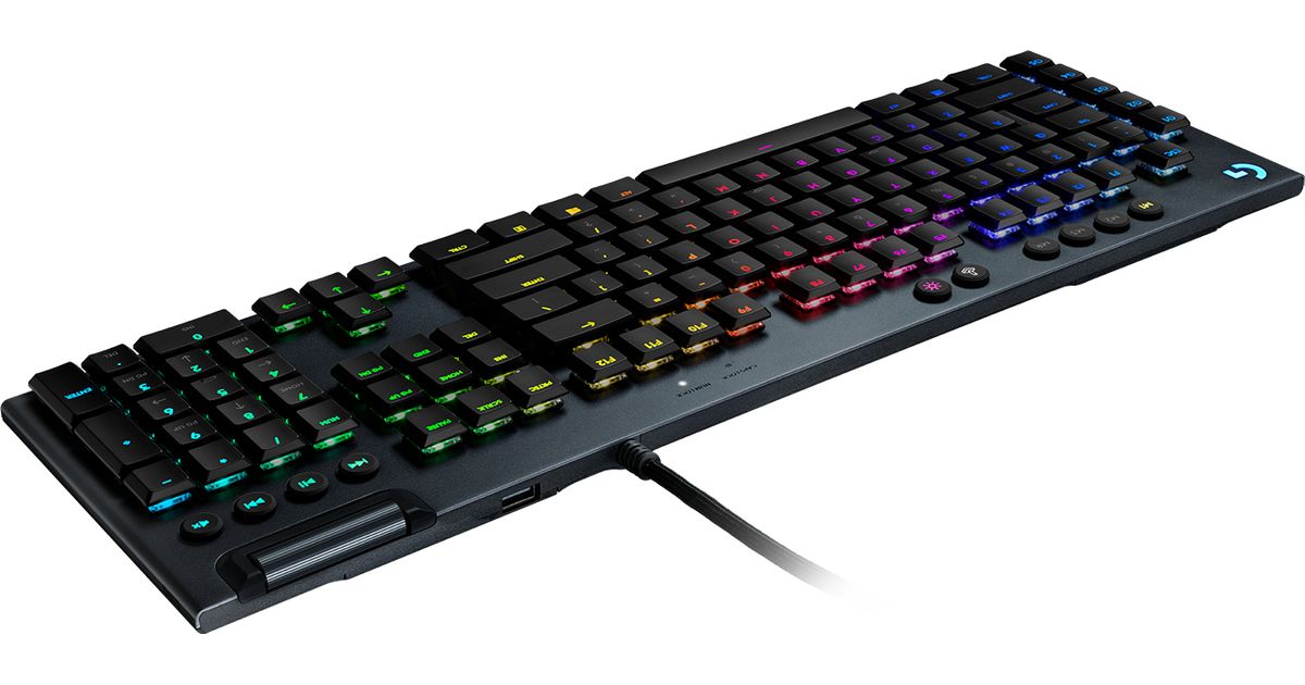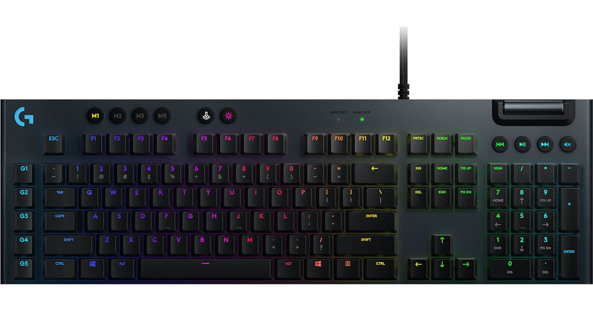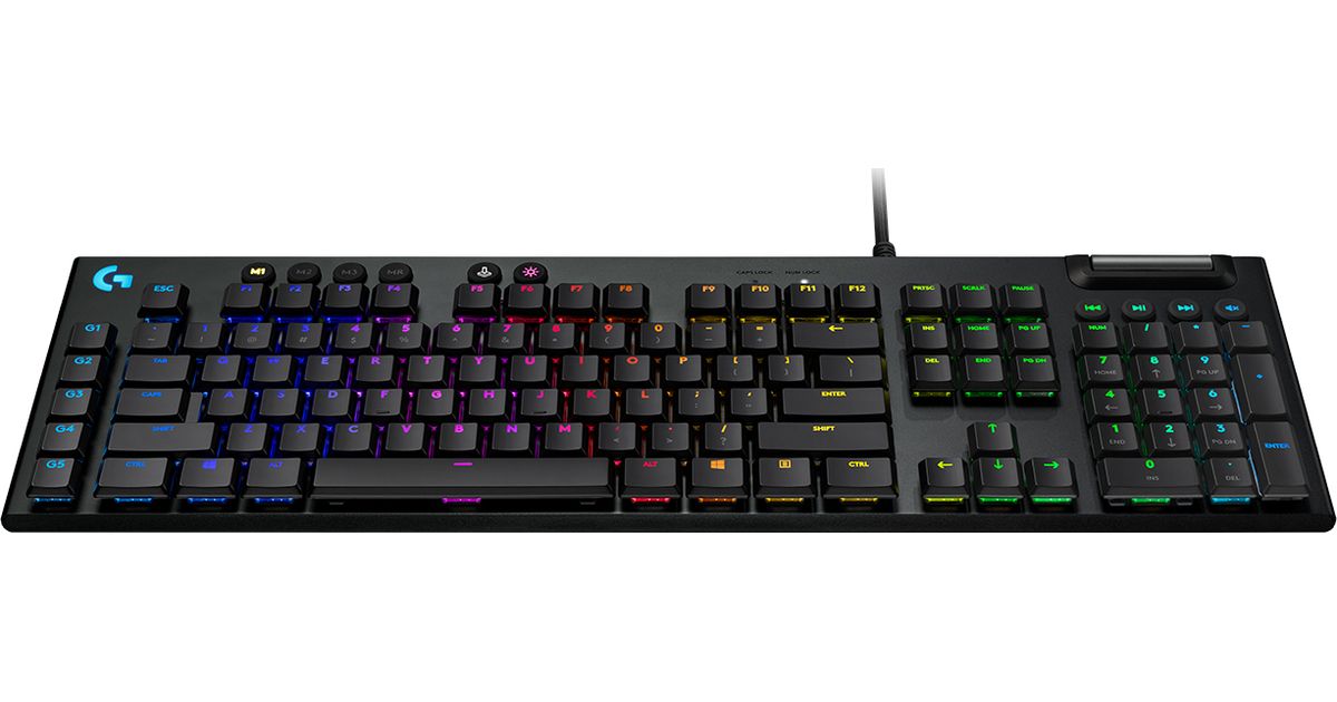 G815 packs advanced gaming technologies into a ultra-thin and sophisticated design. Fully customizable per-key, LIGHTSYNC RGB technology also reacts to in-game action, audio and screen color as you choose. With a sleek, impossibly thin yet durable and sturdy design, G815 features high-performance low-profile GL switches available in Clicky, Tactile or Linear experience.. Programmable G-keys let you create and execute complex actions simply and intuitively and the volume wheel and media keys give you fast, easy control over video, audio, and streaming. G815 also features a USB passthrough to quickly plug in a flash drive or another device to charge.