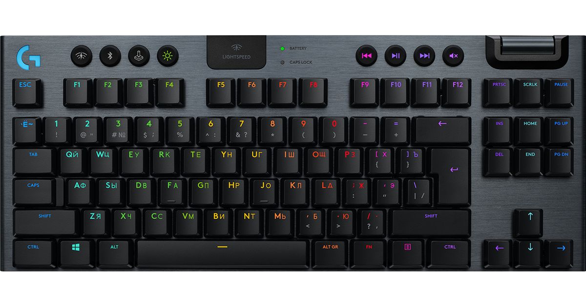 Logitech G G915 Tkl, Tenkeyless (80 - 87%), RF Wireless + Bluetooth, Mechanical, RGB LED, Carbon