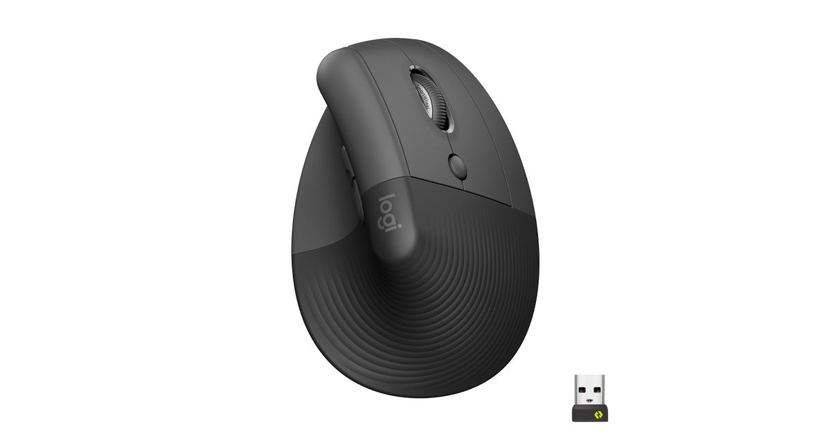 Logitech Lift Vertical Ergonomic Mouse, Right-hand, Vertical design, Optical, RF Wireless + Bluetooth, 4000 DPI, Graphite