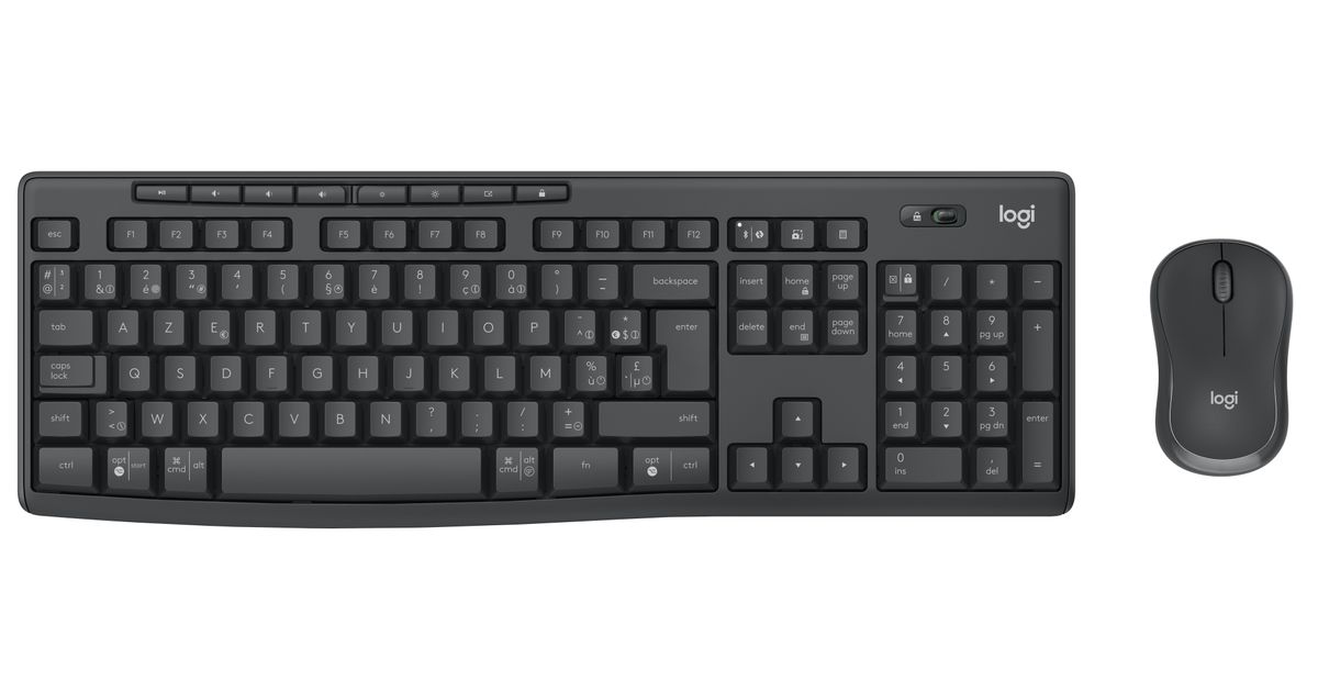 Logitech MK370 Combo for Business, Full-size (100%), RF Wireless + Bluetooth, Membrane, AZERTY, Graphite, Mouse included