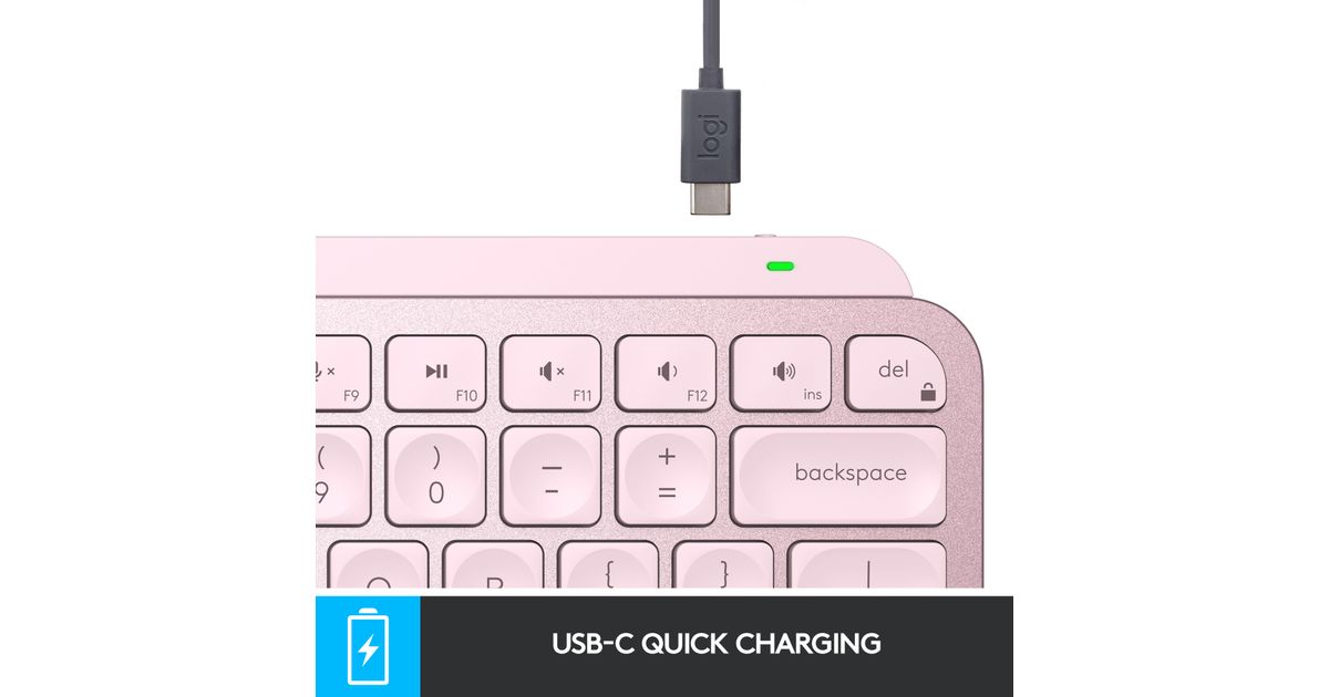 MX Keys Mini Bluetooth keyboard stays powered up to 10 days on a full charge or up to 5 months with the backlighting turned off