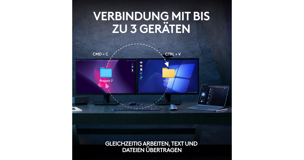 Pair MX Keys S Combo to work on multiple computers and cross-OS - and transfer text, images and files between them. - just copy on one and paste to the other.