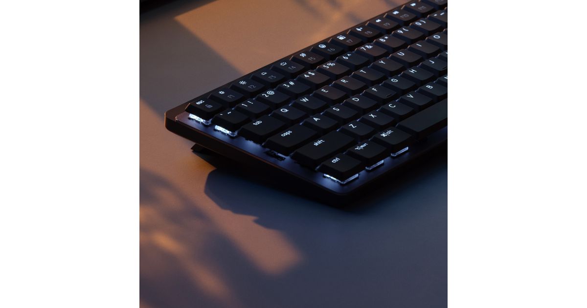 Ultra-precise and stable switches offer deep and reassuring key travel – in a low-profile form factor. Your fingers glide effortlessly across the matte surface of the keys – and dual color keycaps make it easy to orient your fingers and stay in your flow.