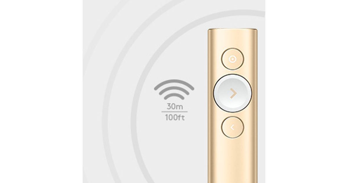 Logitech Spotlight Presentation Remote, Bluetooth/RF, USB, 30 m, Gold