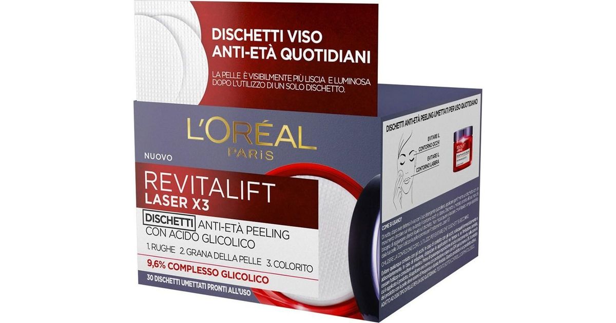L'Oreal Paris L'Oreal Paris, Revitalift Laser X3, Glycolic Acid, Anti-Ageing, Peel-Off Pads, 30 pcs For Women