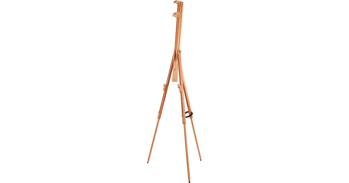Art easel. A sturdy, practical and easy-to-transport field easel. Solid thanks to its construction: evaporated and oiled beech wood, rubber protection, clamping system with wing nuts. This easel remains very practical despite its large size: up to 185 cm high. However, its weight of only 1.6 kg, its ability to fold to a height of only 83 cm makes it suitable for carrying into the field. It fits a 115 cm canvas, is adjustable from vertical to horizontal and can accommodate two canvases if required.