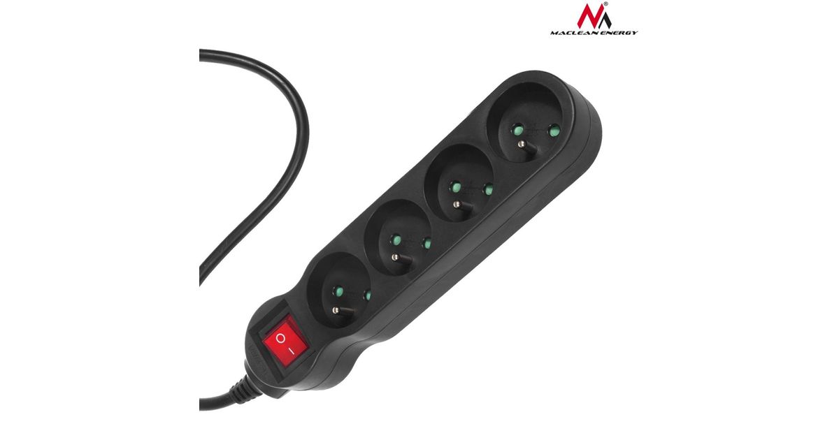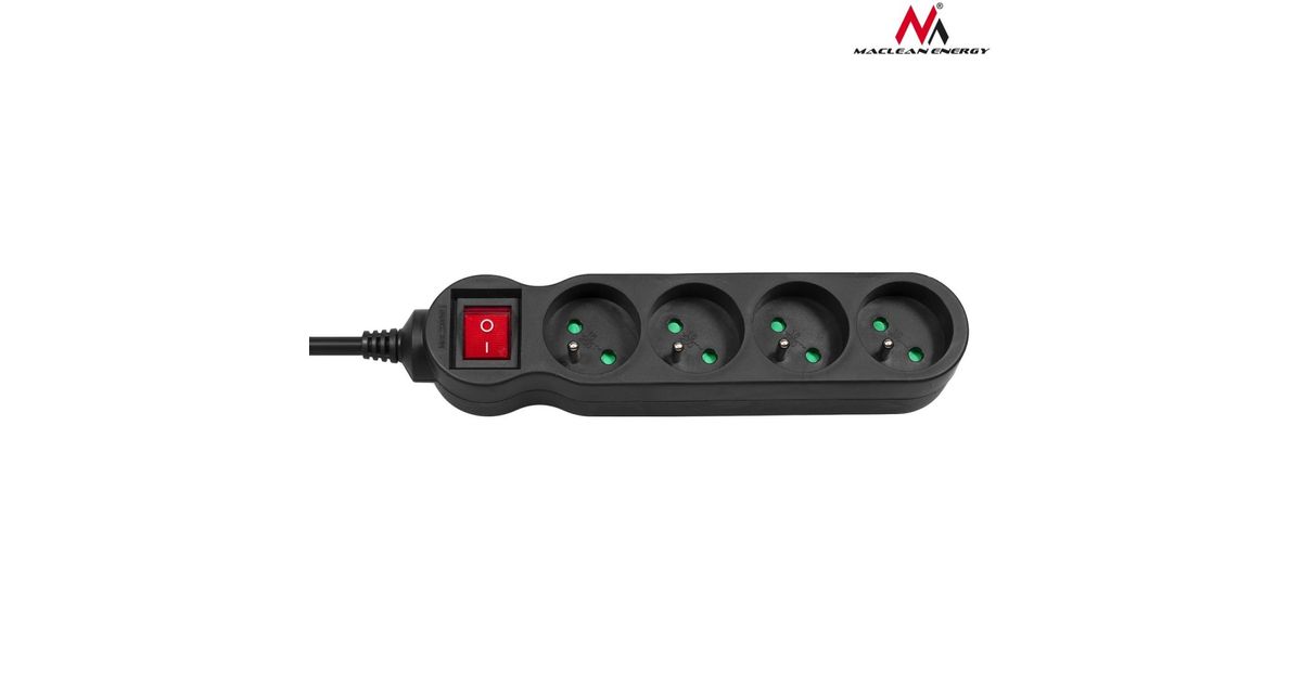 Maclean MCE180, 1.4 m, 4 AC outlet(s), Indoor, Type F, Type F, Black