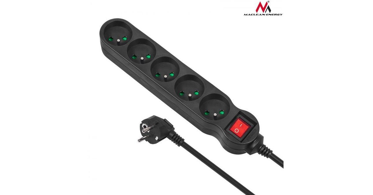 Maclean MCE184 power extension 3 m 5 AC outlet(s) Indoor Black