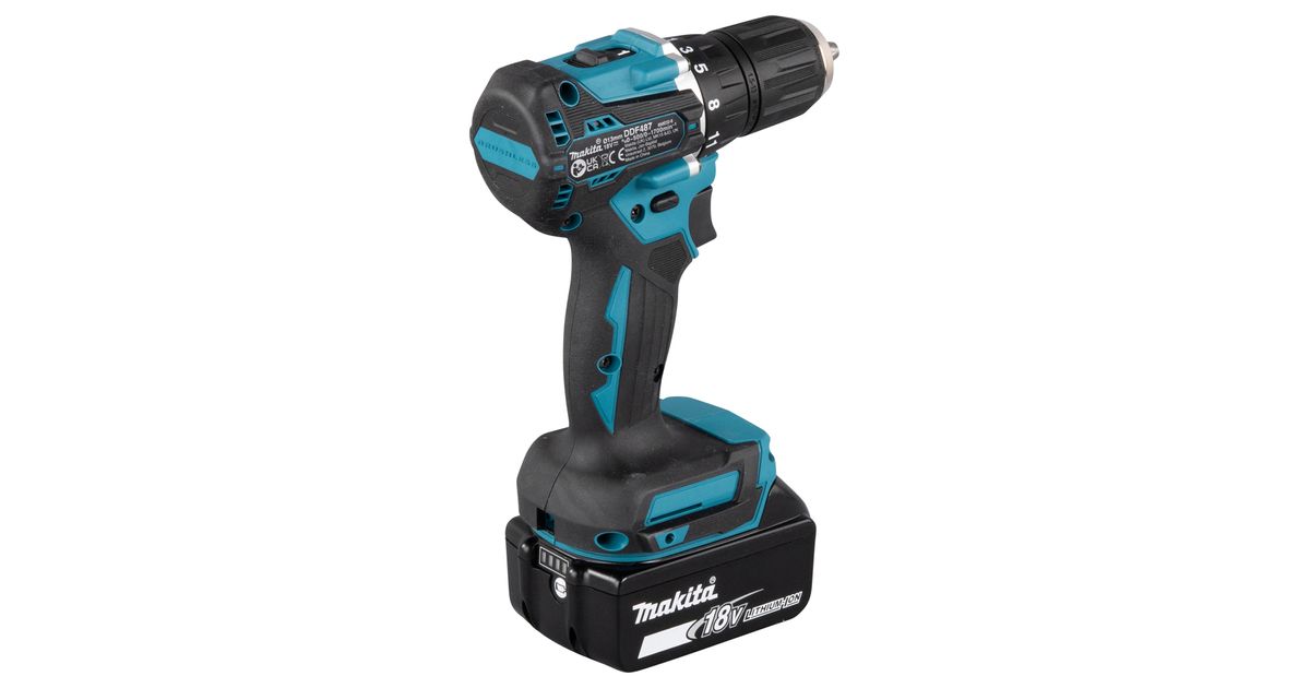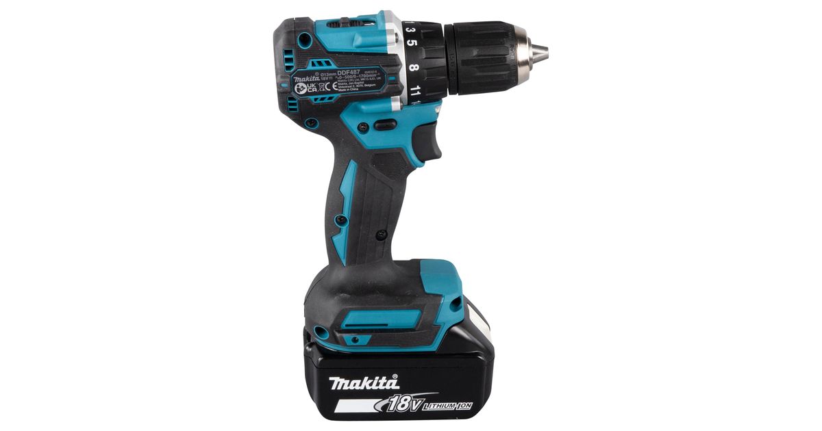 Makita DDF487RFE3, Power screwdriver, Pistol handle, 1/2", Black, Blue, Steel, Deep discharge, Overload, 1700 RPM