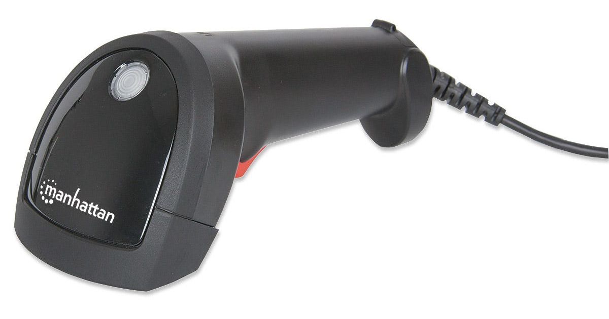 Manhattan Linear CCD Handheld Barcode Scanner, USB, 500mm Scan Depth, IP54 rating, Cable length 1.5m, Max Ambient Light 100,000 lux (sunlight), Black, Three Year Warranty, Box