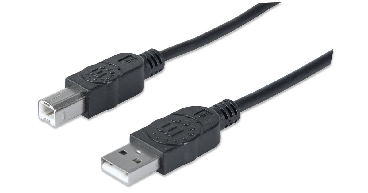 Manhattan USB-A to USB-B Cable, 3m, Male to Male, 480 Mbps (USB 2.0), Equivalent to USB2HAB3M, Hi-Speed USB, Black, Lifetime Warranty, Polybag, 3 m, USB A, USB B, USB 2.0, Male/Male, Black