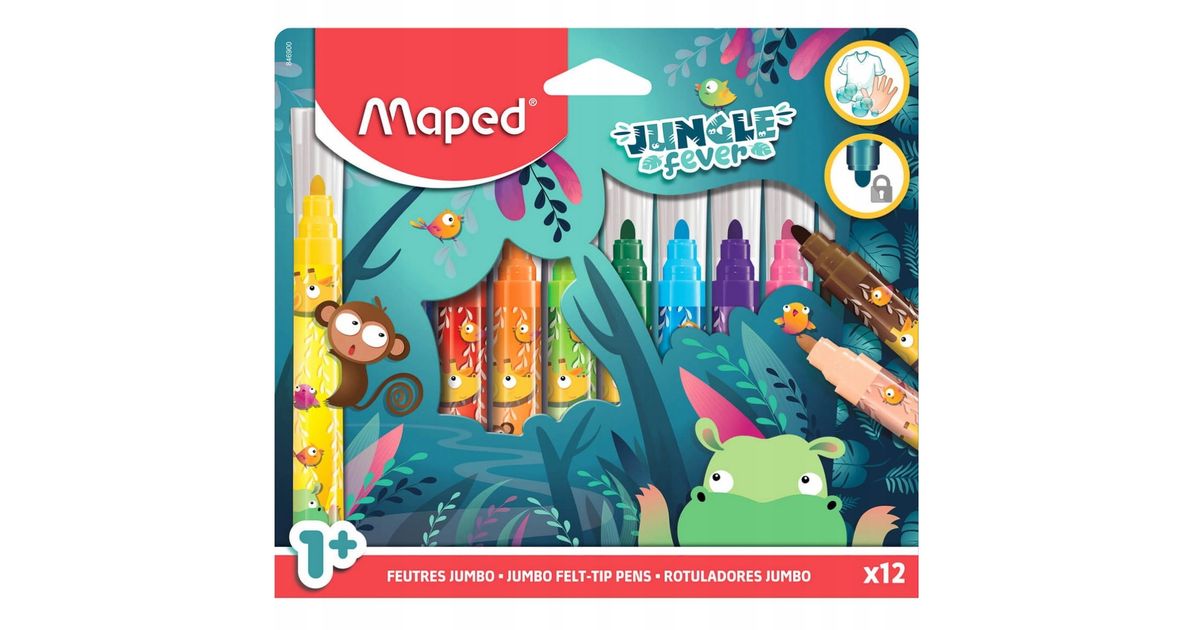 Maped Fasermaler JUNGLE fever JUMBO, 12er Kartonetui Strichstärke: 5 mm, fest eingefasste Spitze, - 1 Stück (846900)