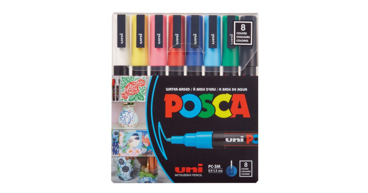 Marker UNI Posca PC3M, põhivärvid 8tk, 0,9-1,3mm - Pencils and accessories - Stationery - Office equipment - MT Shop