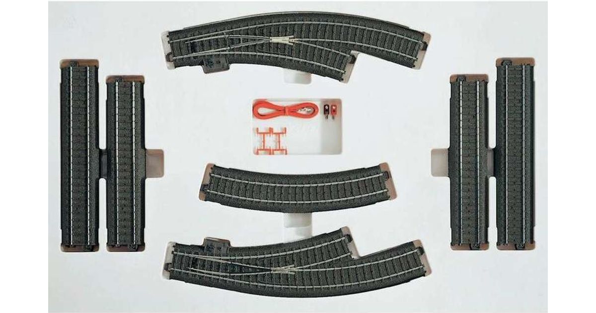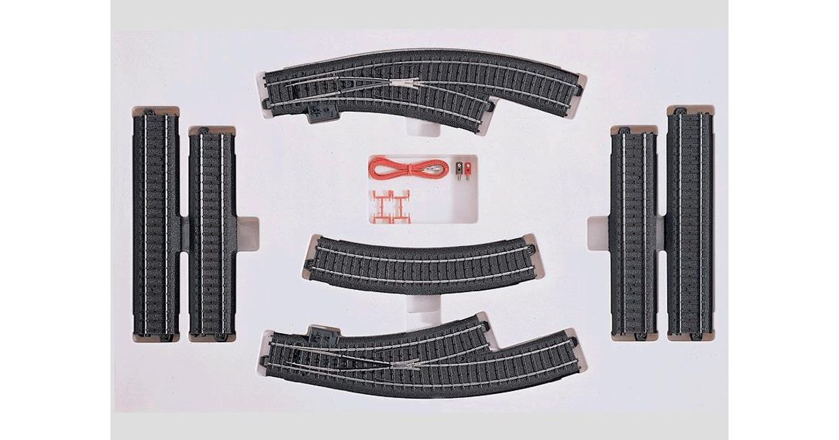 Contents: 7 no. 24188 straight track, 7 no. 24172 straight track, 2 no. 24130 curved track, 1 no. 24671 curved turnout, 1 no. 24672 curved turnout and instructions.