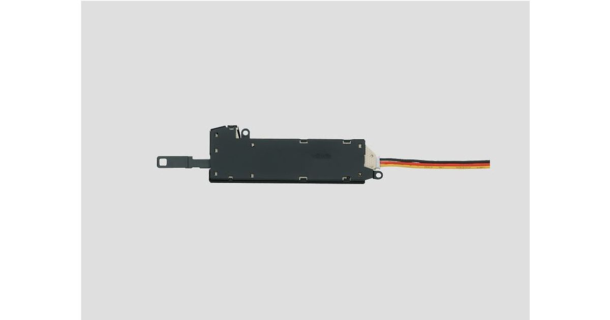 This is a kit for converting C Track turnouts. It has a double solenoid mechanism with end shut-off contacts. It can be operated from a turnout control box with a feedback function or from a turnout installation Decoder1. This electric mechanism can be installed and connected on turnouts very easily without special tools. The mechanism sits hidden in the roadbed; below-baseboard mounting is not required. It is encapsulated against dirt and is protected against overloads with the end shut-off contacts. The mechanism can be controlled from the turnout control box. The hand lever can be left on the turnout for manual control.