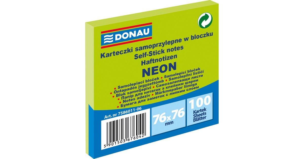 Märkmepaber iseliimuv Donau neoonroheline 76x76mm (pakis 100 lehte)