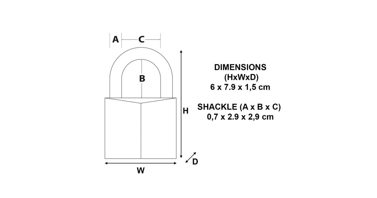 The Master Lock padlock No. 9160EURD has a 60 mm wide, solid aluminum body that is durable and corrosion resistant. The shackle has a diameter of 7 mm, a length of 29.3 mm and is made of hardened steel with increased resistance to cutting or sawing. The locking cylinder with 5 pins protects against lock picking and the locking levers on both sides offer protection against break-in attempts and hammer blows.
