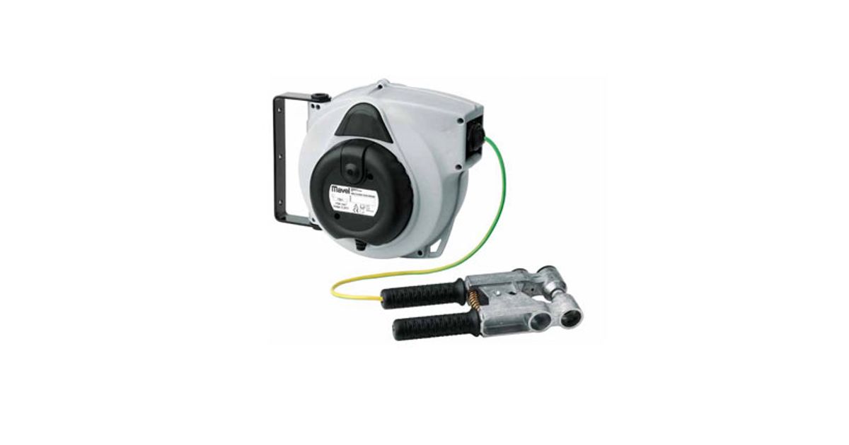 Automatic cable reel equipped with 15 m x 6 mm2 yellow/green cable.