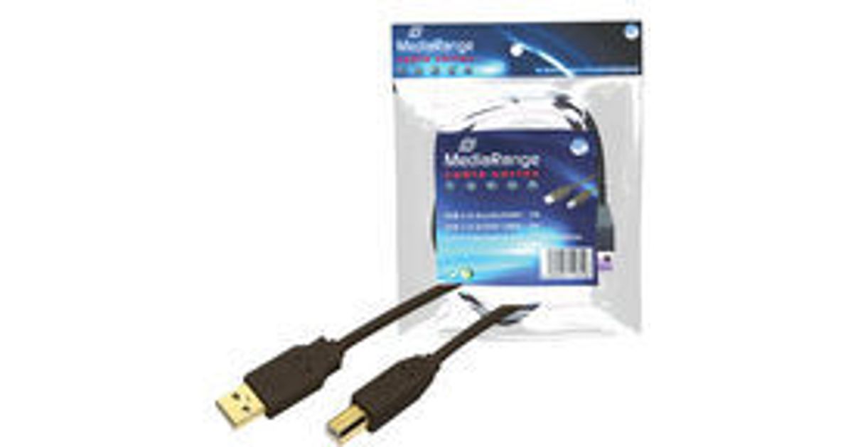 MediaRange MRCS101, 1.8 m, USB 2.0 connector AM, USB 2.0 connector BM, Male/Male, Black, Printers, scanners, external hard drives