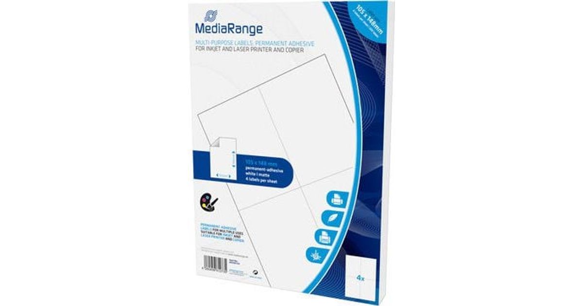 MediaRange MRINK143, White, Permanent, 105 x 148, A4, Matte, Laser/Inkjet