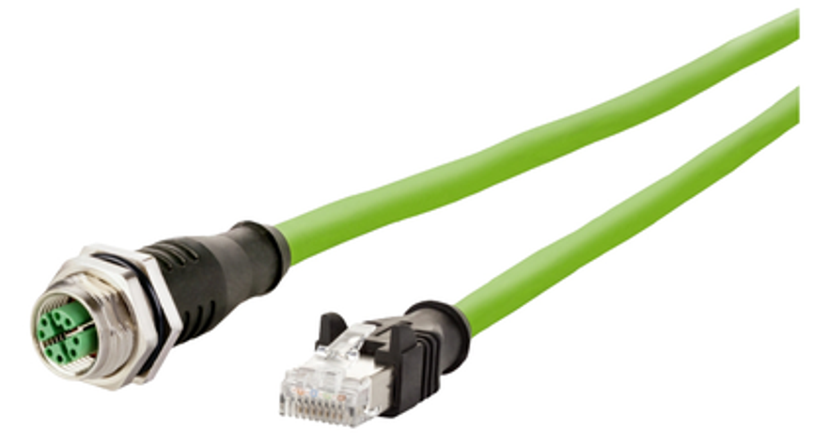 Metz Connect 142M2X25100 M12 Network Cable, Patch Cable Cat 6A S/Ftp 10.00 M Green Pur Coating, Acid-Resistant, Ozone-Resistant, Uv-Resistant, Suitable For