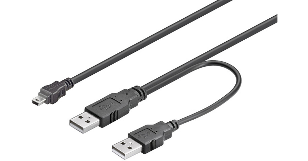 Microconnect 2 x USB A/Mini USB B, 0.6 m, 0.6 m, Mini-USB B, 2 x USB A, USB 2.0, Male/Male, Black