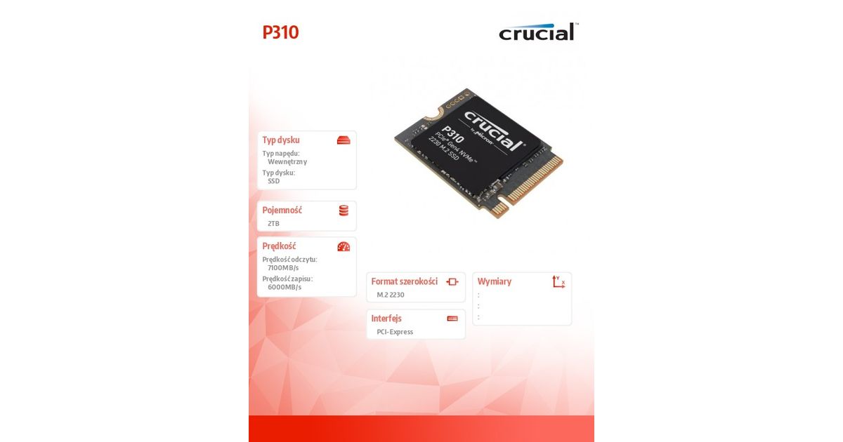 Micron Crucial P310 - SSD - 2 TB - intern - M.2 2230 - PCIe 4.0 (NVMe) (CT2000P310SSD2)