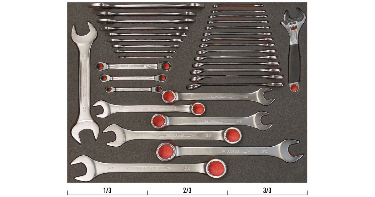 Mixed wrench set (combination, open-end, ratcheting, adjustable) 34pcs in foam