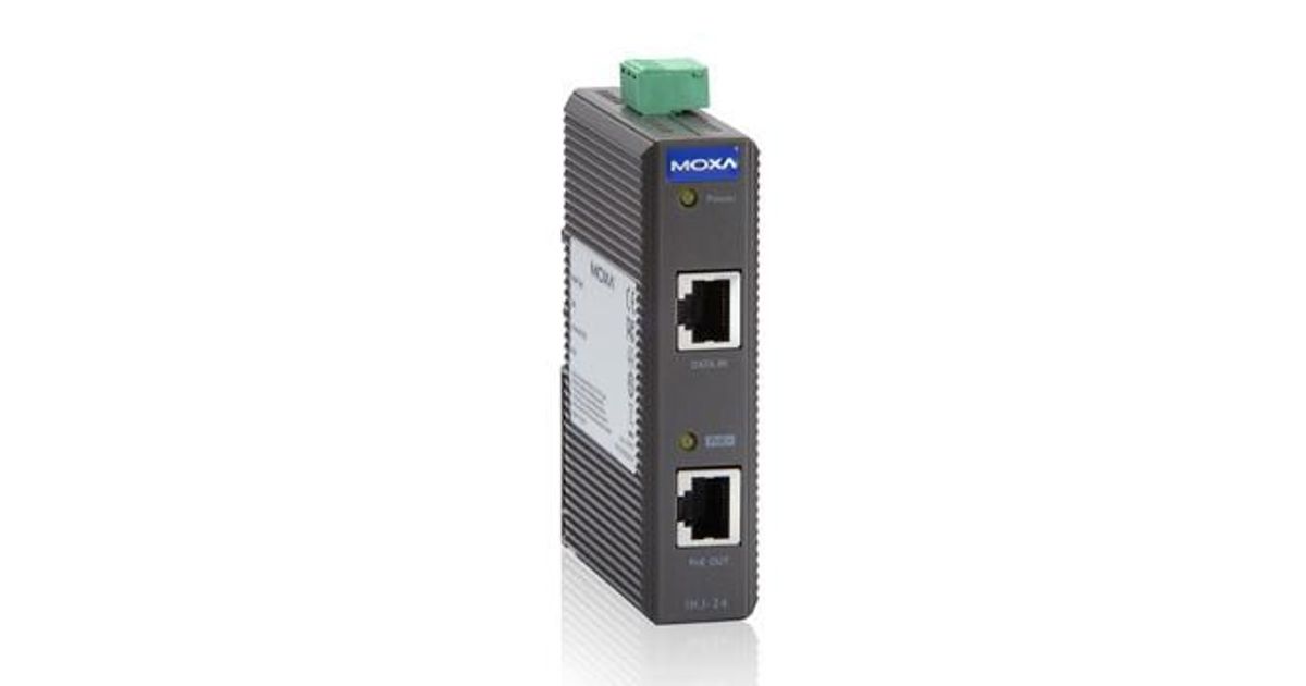 Moxa INJ-24, Network repeater, 2525278 h, 10/100/1000Base-T(X), IEEE 802.3, IEEE 802.3ad, IEEE 802.3af, IEEE 802.3at, IEEE 802.3u, Black, EN 61000-4-2 (ESD) Level 3, EN 61000-4-3 (RS) Level 3, EN 61000-4-4 (EFT) Level 3, EN 61000-4-5...