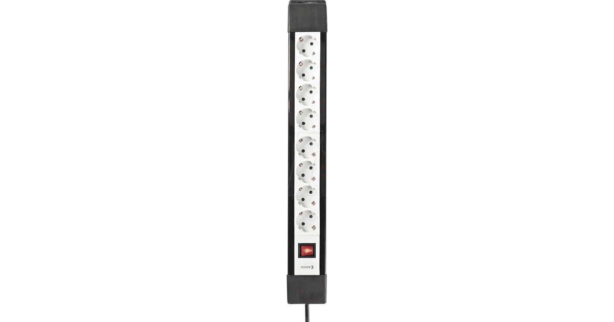 Extension socket to split a wall socket in eight power points. It is equipped with child safety shutters and a long power cable to power electrical devices anywhere at home or in the office. The extension socket features a sturdy housing which is especially suitable for intensive use.