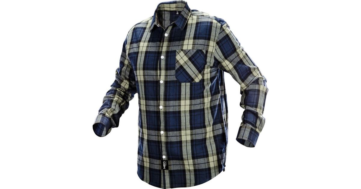 Neo Flannel Shirt (Navy-olive-black flannel shirt, size S)