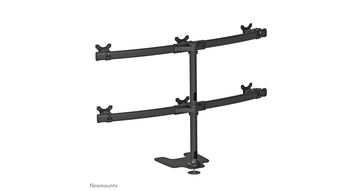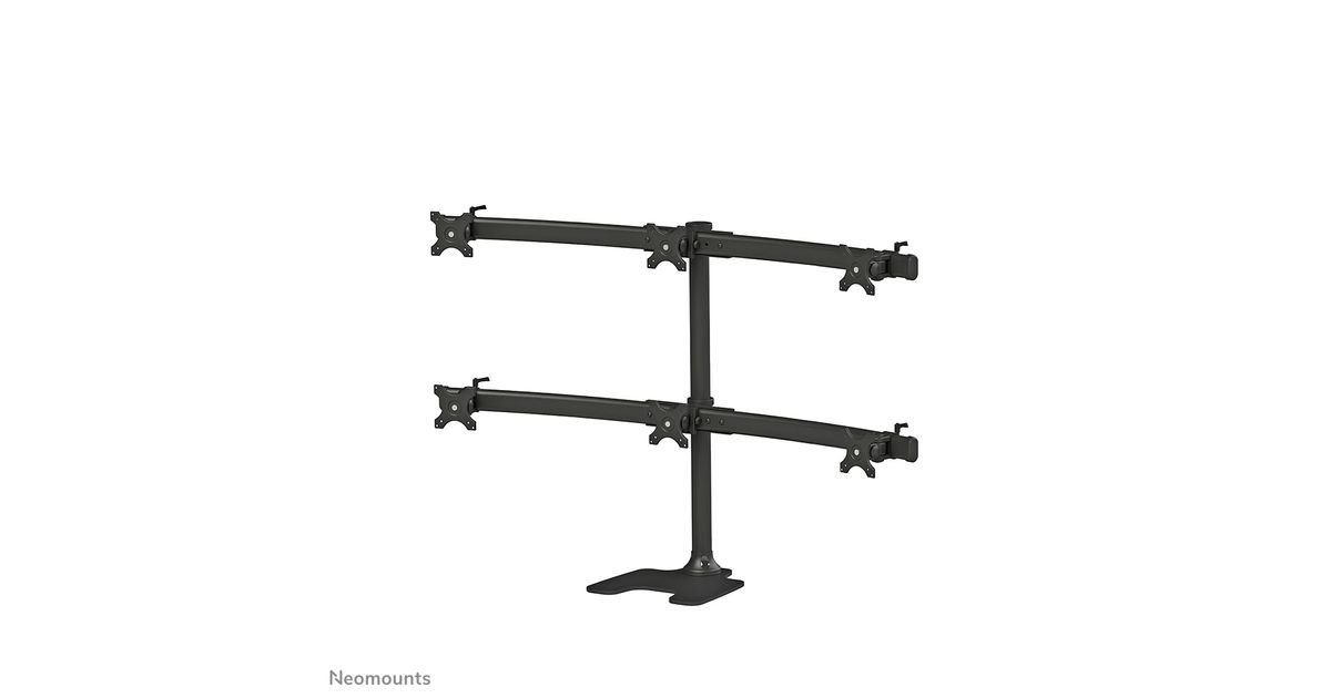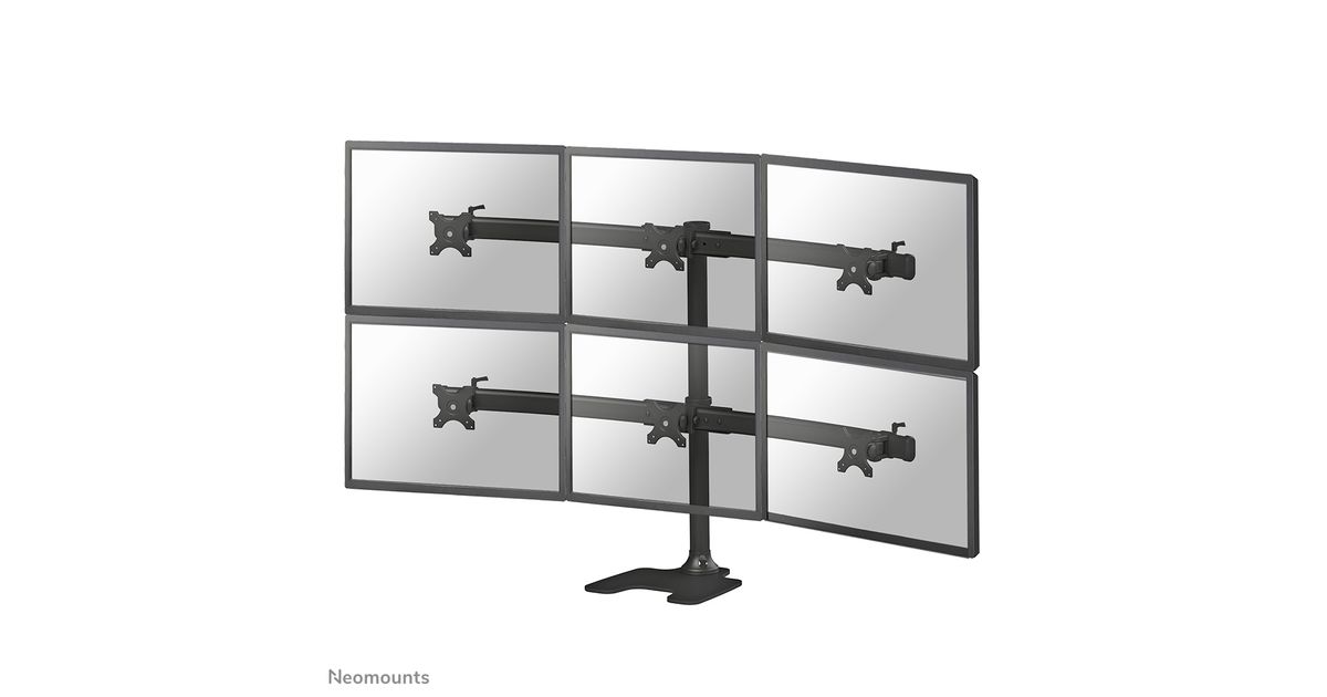 The Neomounts by Newstar desk mount, model FPMA-D700DD6 is a tilt-, swivel and rotatable desk mount for 6 flat screens up to 27". This mount is a great choice for placement on desks using a desk stand.