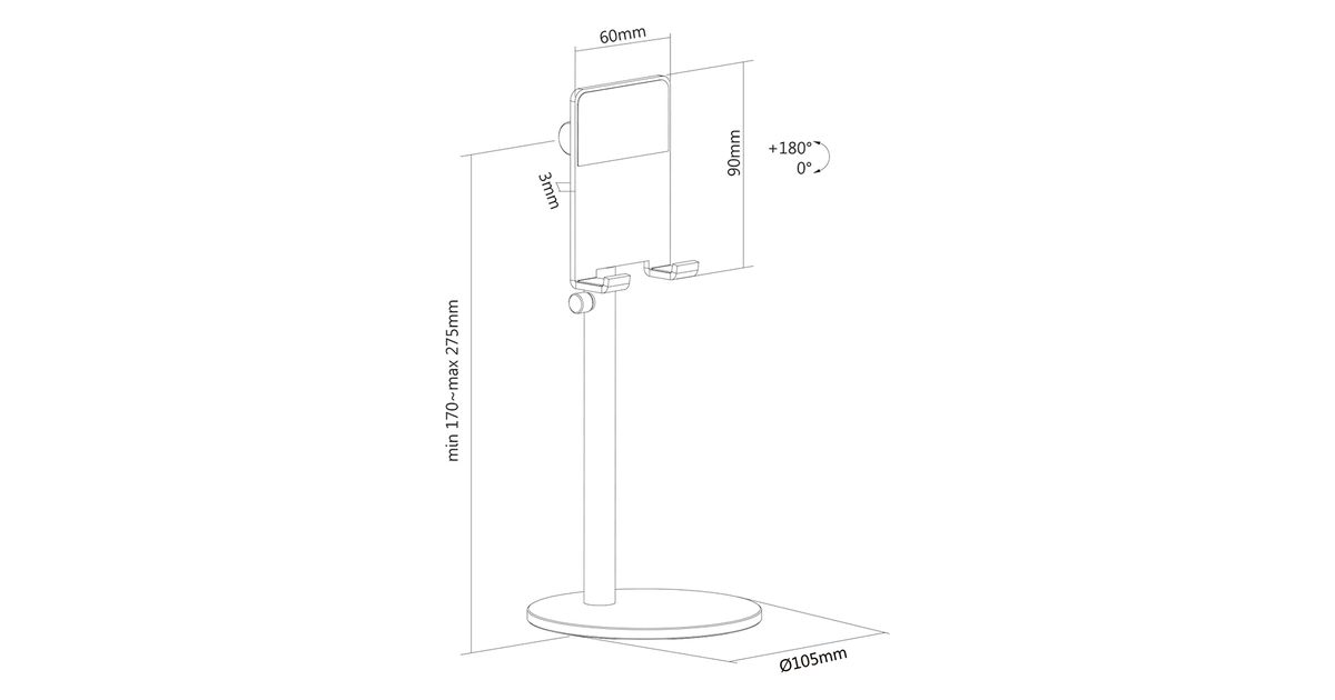 The Neomounts by Newstar DS10-200SL1 is a height adjustable stand for smartphones up to 7". The clever tilt option (180°) allows the stand to change to the ideal viewing angle. Additionally, the stand can be adjusted in height from 17-27,5 cm. The phone stand is ideal for hands-free video calling, watching a movie or playing a game.