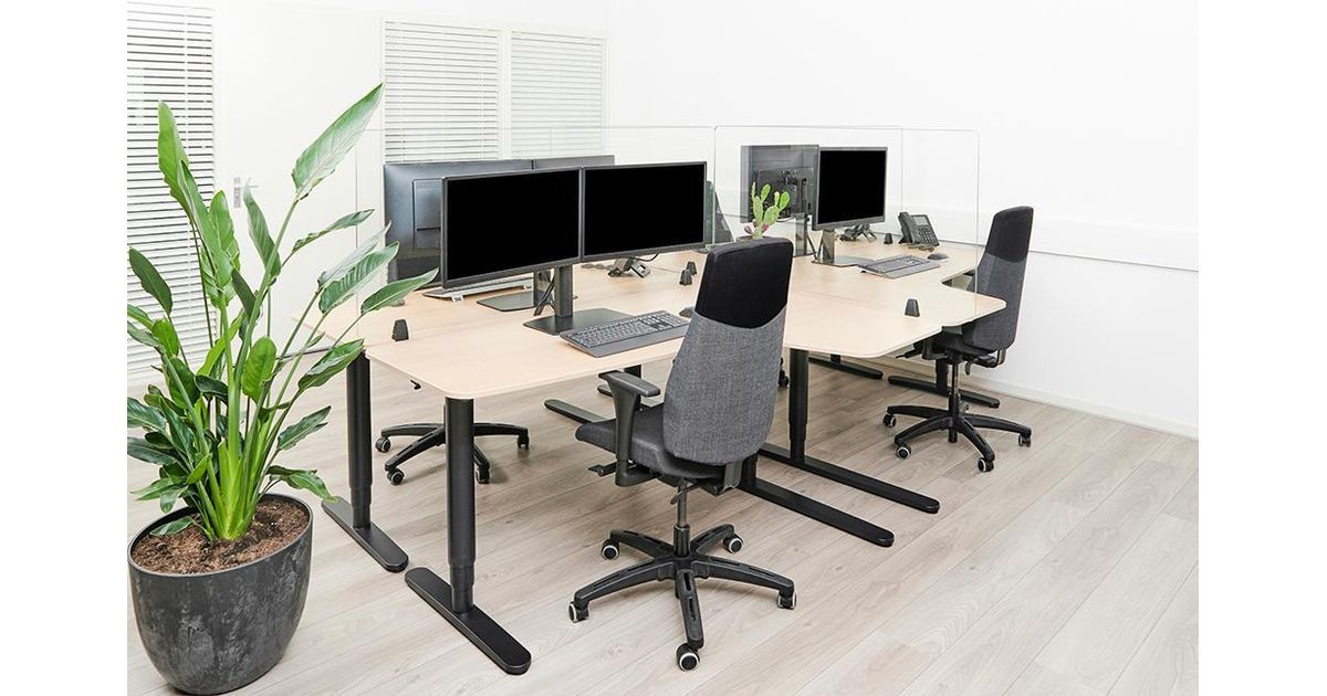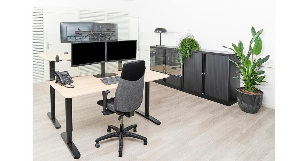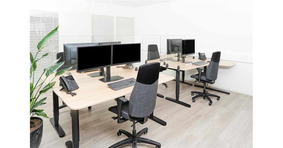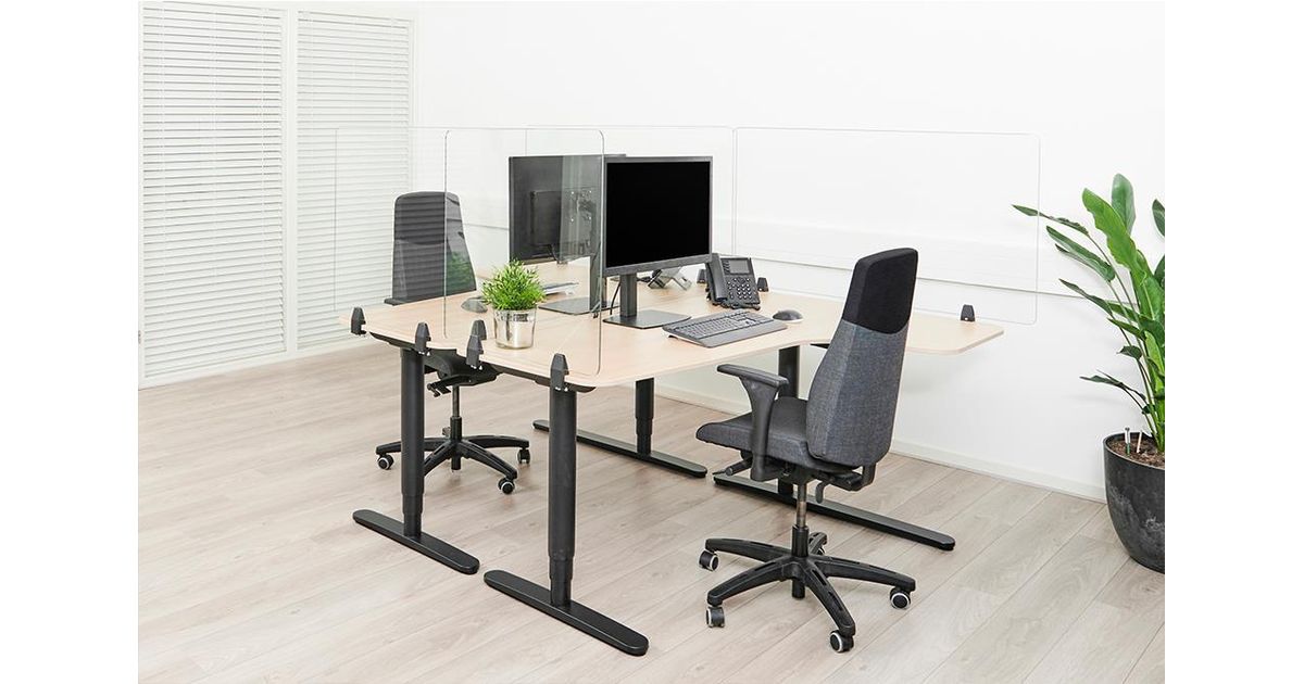 With the NS-GLSPROTECT, the workplace can be shielded from the front and side in a durable and stylish way, to create extra safety and distance from others. The series consists of 4 models with different sizes; the NS-GLSPROTECT100, NS-GLSPROTECT120, NS-GLSPROTECT140 and NS-GLSPROTECT160, for respectively 1 m, 1,2 m, 1,4 m and 1,6 m desks. All models are 65 cm high and 6 mm thick and made of laminated and tempered glass. The tempered glass adds an extra safety aspect to the screens; the transparent film between the two layers of glass increases the resistance and ensures that the glass stays in place and does not shatter, in the extreme case that the glass of the screen should break. The NS-GLSPROTECT models can be easily attached to the desk with two clamps and therefore move with the height-adjustable desk. The models can be used as desired for both the front and the sides of the desk, to create optimal safety. When mounted to the side of an average desk, the screen protrudes beyond the desk, automatically creating a barrier between the user and any person at the desk next to it. The NS-GLSPROTECT products are 100% recyclable, very user-friendly, easy to install and easy to clean.