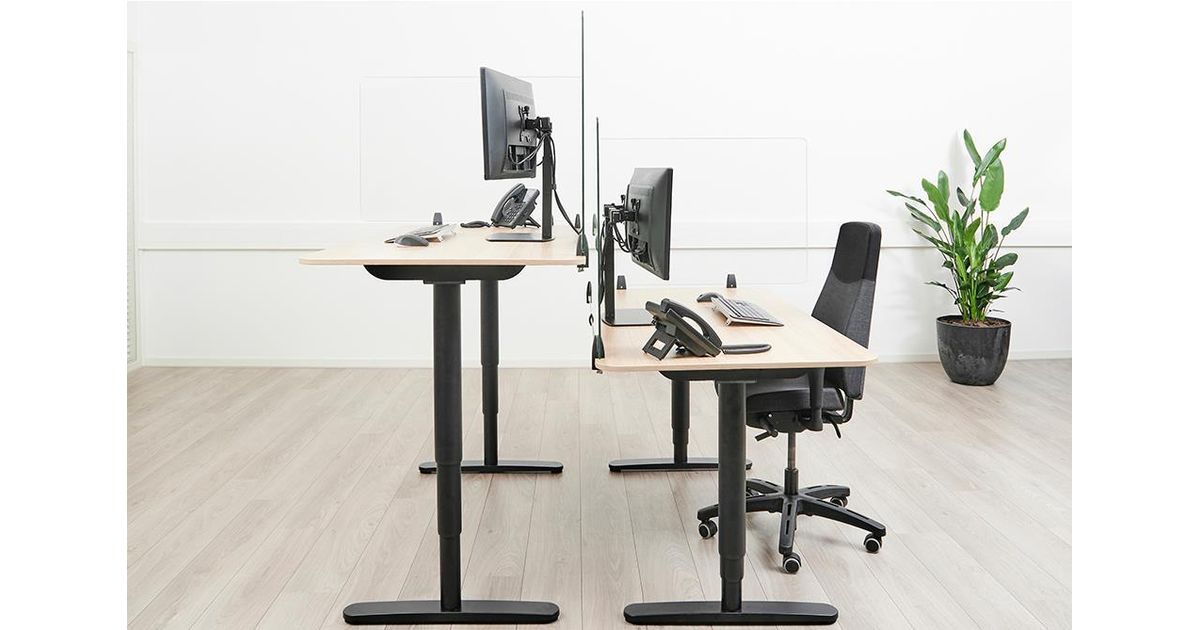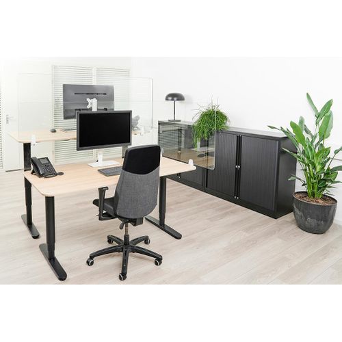 The NS-GLSPROTECT140 is 1,38 m wide x 65 cm high and suitable for desks with a maximum thickness of 25 mm*. The screen is made of 6 mm laminated and tempered glass and has rounded corners and edges for extra safety. The screen can be easily installed onto the desk with 2 clamps and offers a durable and stylish solution for the new way of working. The screen comes with both white and black clamps as standard. The clamps guarantee a solid and secure installation onto the desk and move smoothly with the sit-stand workstation when it is adjusted in height.