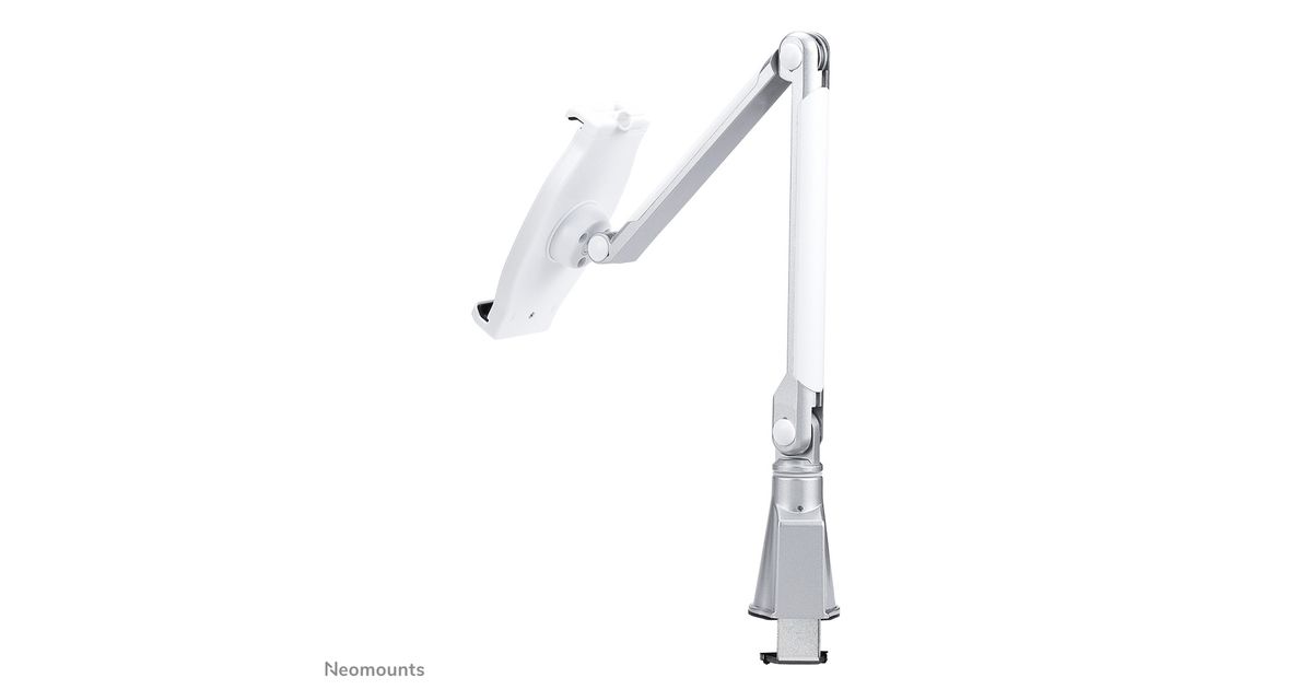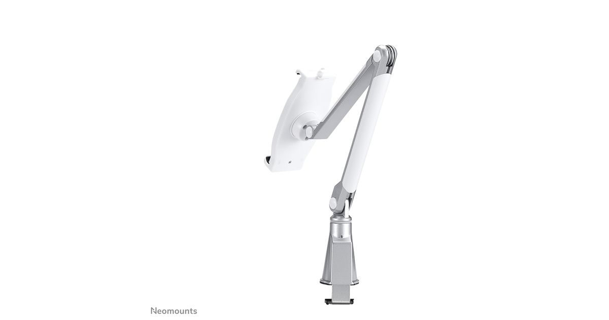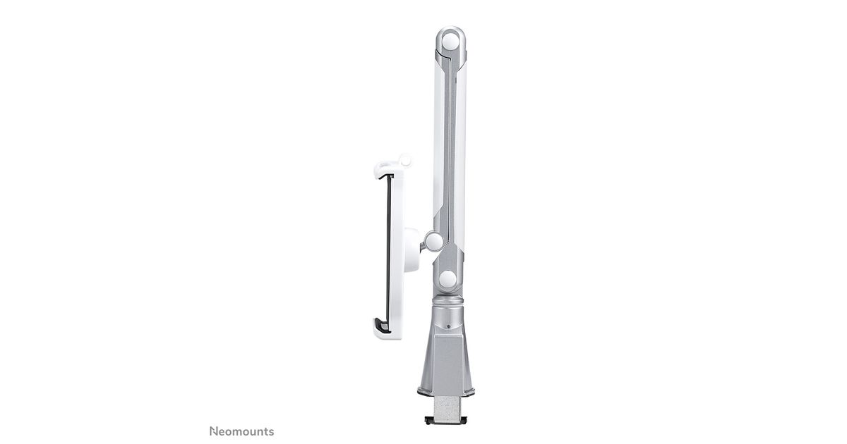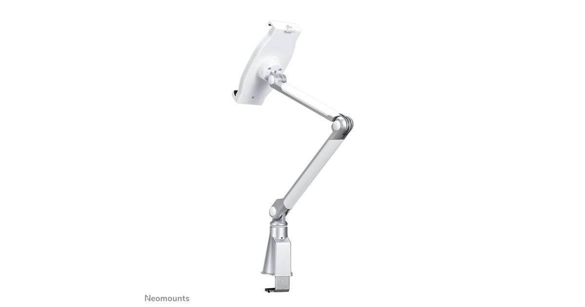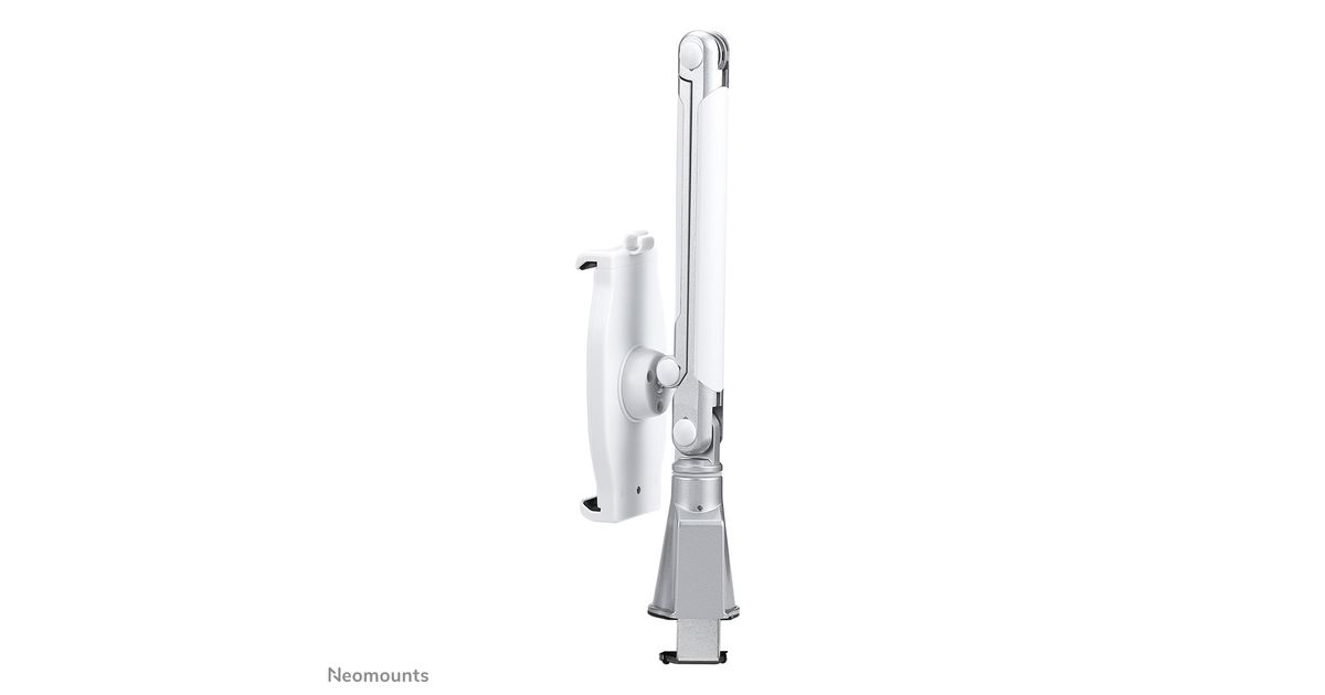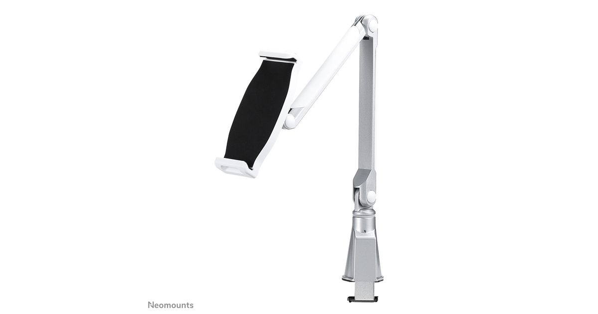 The Neomounts by Newstar tablet mount, model TABLET-D100SILVER is a universal tablet mount offering the tablet maximum functionality. Product Size 146-220 mm (width) x 7-11 mm (depth), available for: iPad, Samsung and other Universal tablets. Install the tablet bracket using a desk clamp.