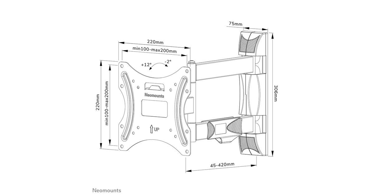 The WL40-550BL12 has a depth of 4,5-42 cm and is suitable for screens that meet VESA hole pattern 100x100 to 200x200 mm.