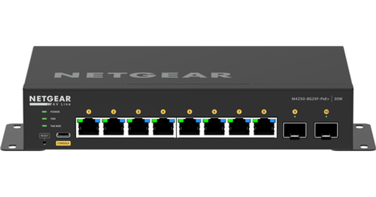 NETGEAR 8x1G PoE+ 220W and 2xSFP+ Managed Switch, Managed, L2/L3, Gigabit Ethernet (10/100/1000), Full duplex, Power over Ethernet (PoE), Rack mounting