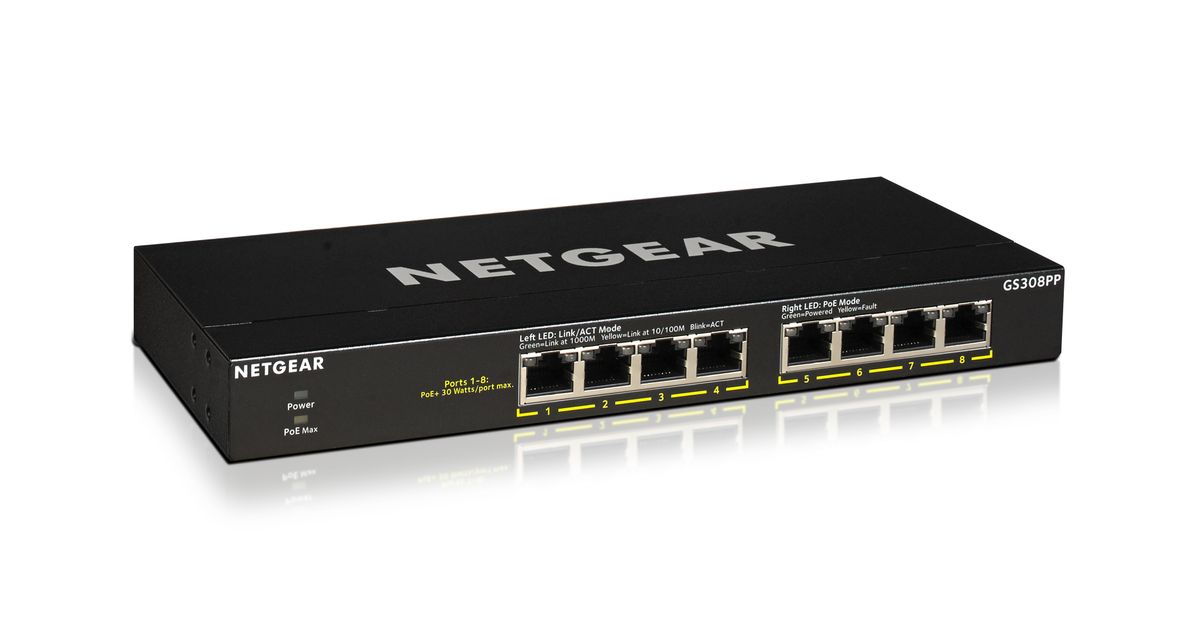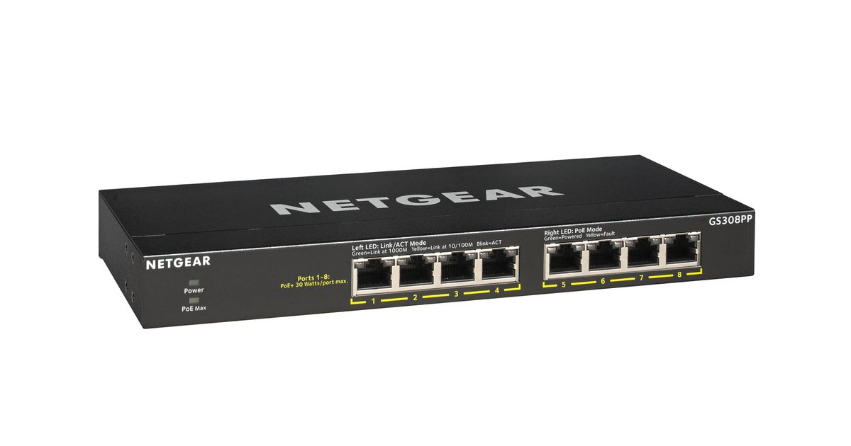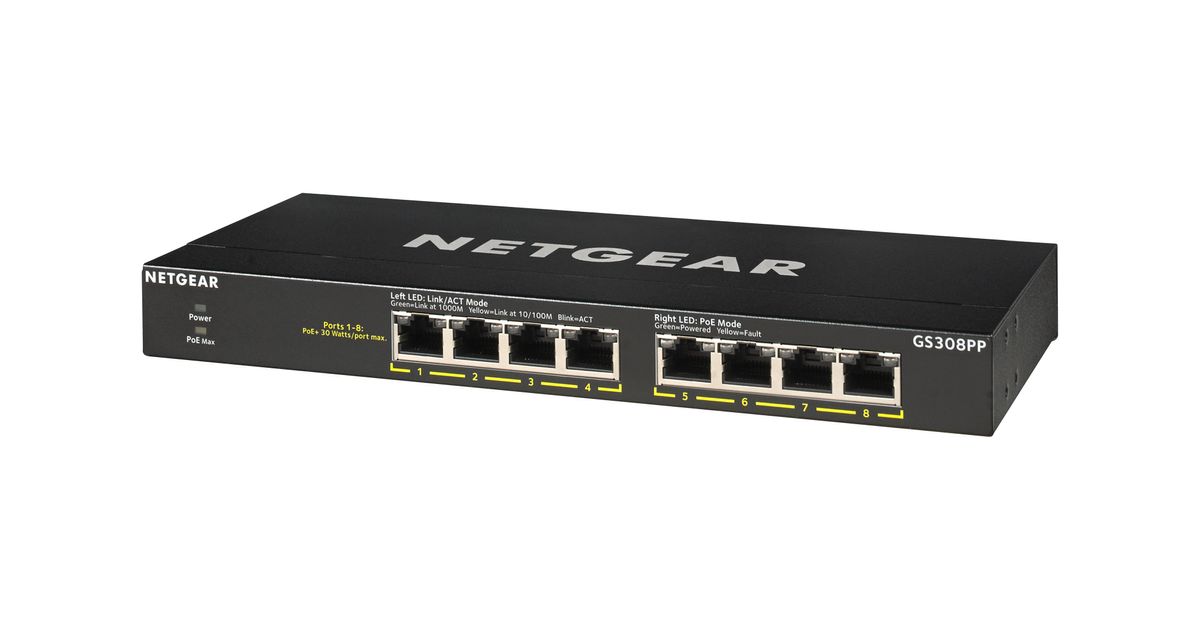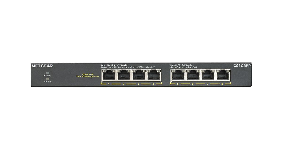 Netgear GS308PP Unmanaged Gigabit Ethernet (10/100/1000) Power over Ethernet (PoE) Black