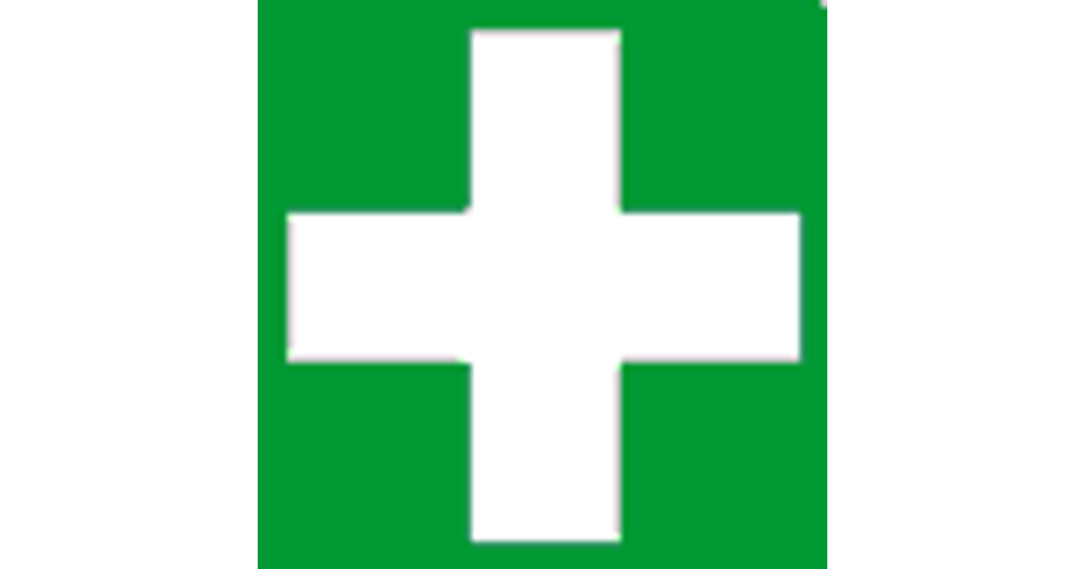 Ohutus - silt Esmaabi - valge rist rohelisel taustal 15x15cm kleebis