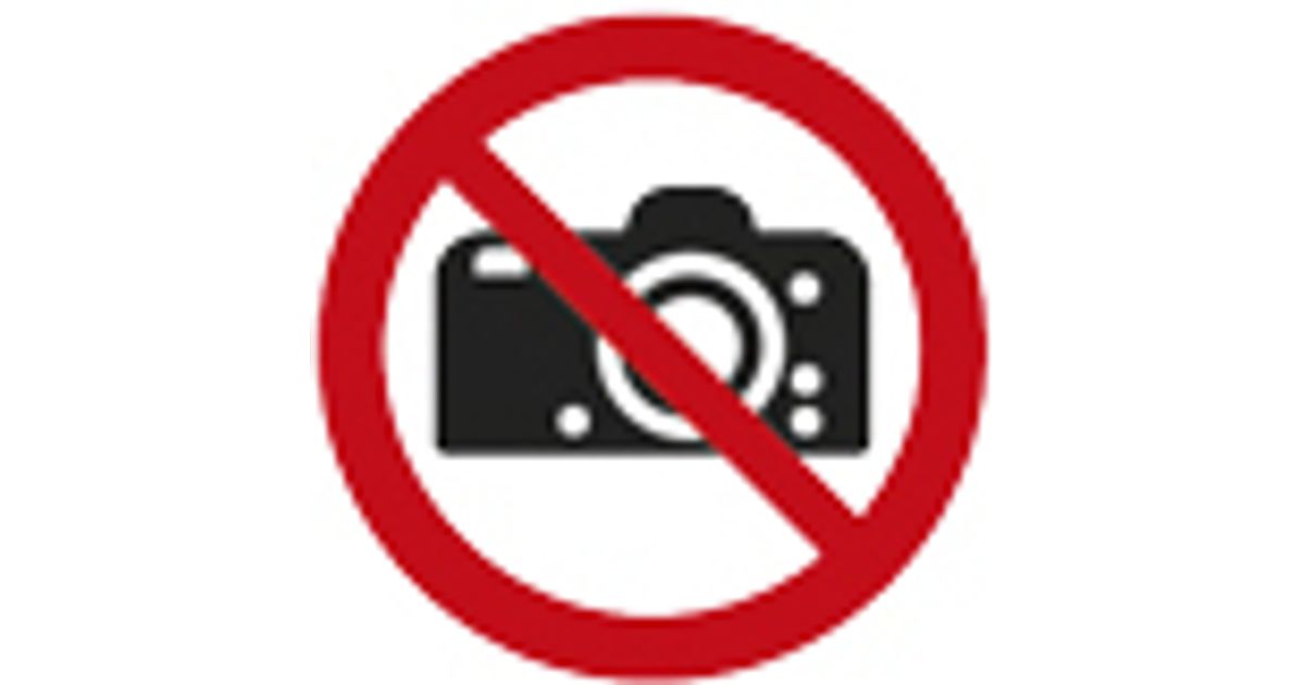 Ohutus - silt Pildistamine keelatud - klaasikleebis 10x10cm seestpoolt kleebitavad, väljastpoolt vaadatavad