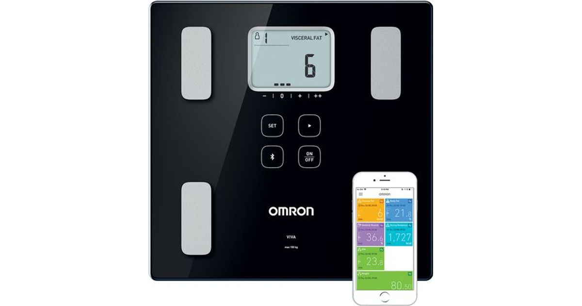 Omron VIVA, Electronic personal scale, Black, Square, Tap, Model OS iPhone 5 10.3.3 iPhone 5C 10.3.3 iPhone 5S 12.1.3 iPhone SE 12.1.3 iPhone 6 12.1.3 iPhone..., LCD