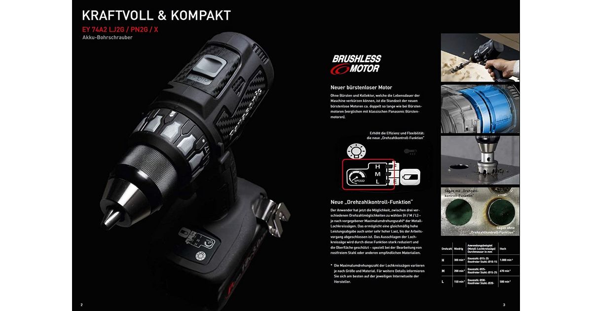 Panasonic EY74A2LJ2G32, Power screwdriver, Black, 18 V, 250 mm, 68 mm, 170 mm