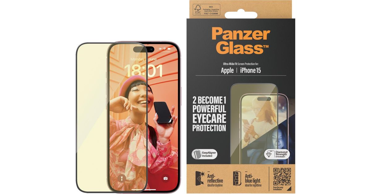 PanzerGlass Eyecare Screen Protection iPhone 2023 6.1 | Ultra-Wide Fit w. EasyAligner