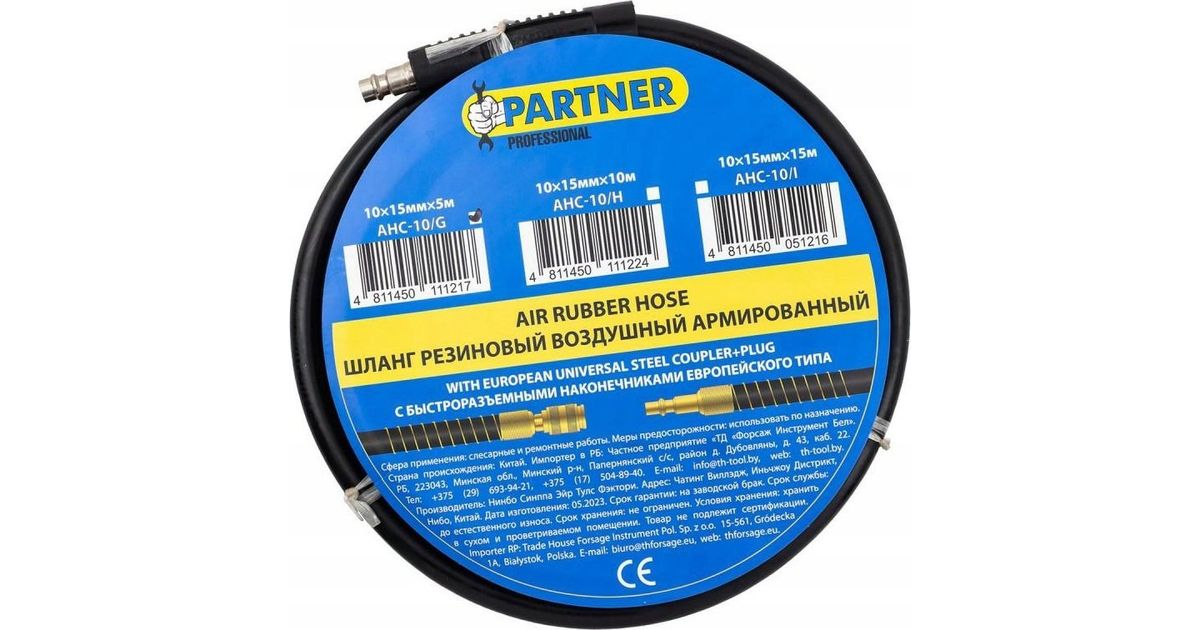 Partner Reinforced pneumatic rubber hose 10mm x 5m with quick connectors