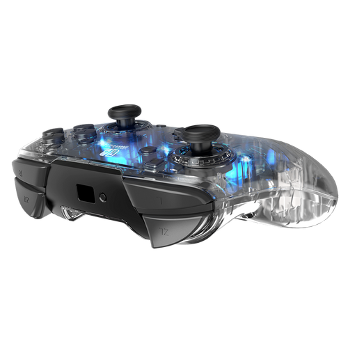Combine the ease of a wireless controller with the full color range of our Afterglow Prismatic LED lighting for the ultimate Switch Pro Controller! Gamers can cycle through the rainbow, set their favorite color, or turn off the lights completely. Peek into the controller's clear polycarbonate housing, to reveal its inner circuitry. Since it’s the Afterglow Wireless Deluxe Controller, it has dual programmable back buttons and motion controls to optimize your gaming. The built-in rechargeable battery allows for extra-long play time (over 25 hours) and a wireless range of up to 30 feet!