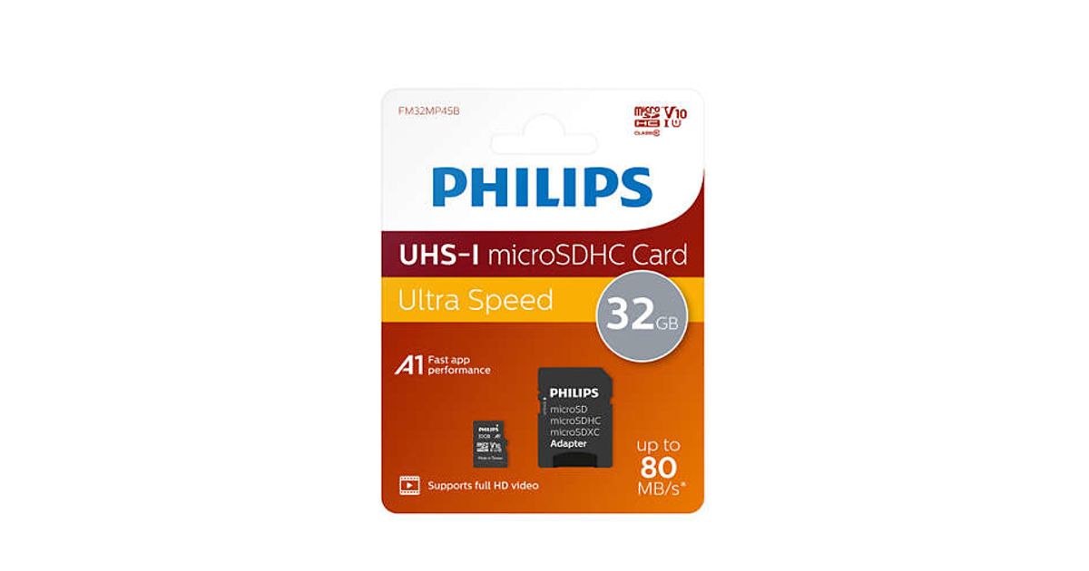 Philips FM32MP45B/00, 32 GB, MicroSDXC, Class 10, UHS-I, 80 MB/s, Class 1 (U1)
